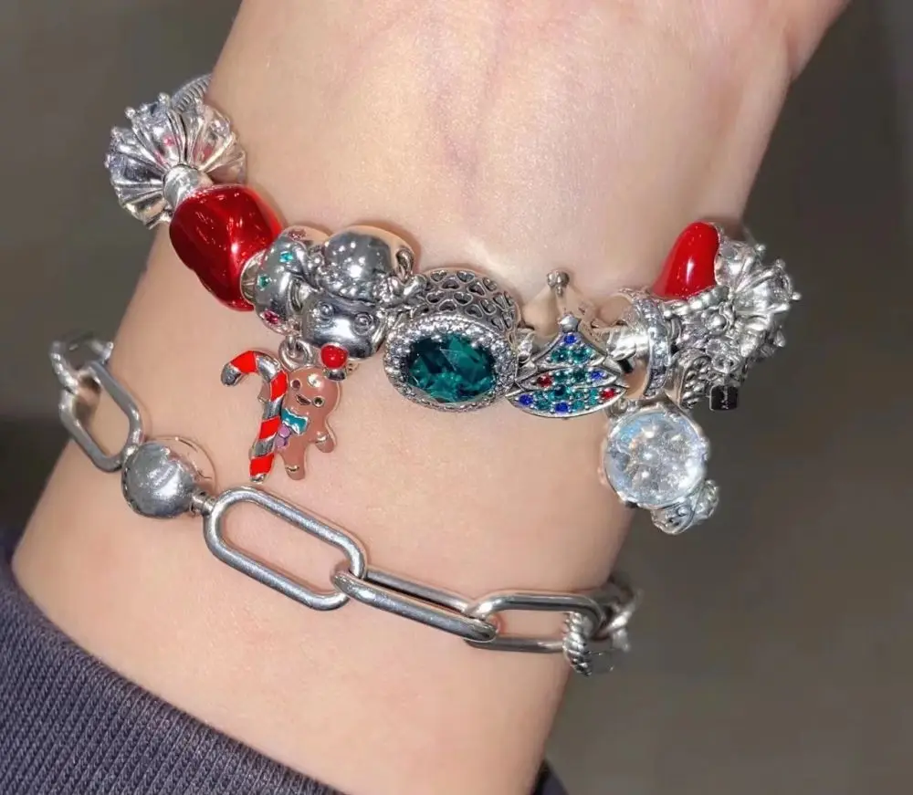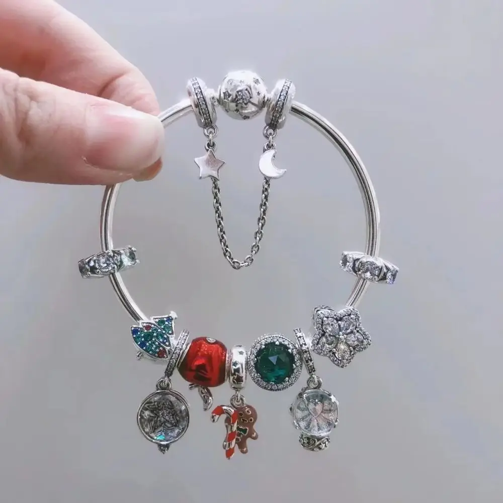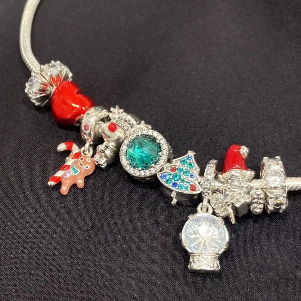 Gem Color: Dark purple - Pure Silver 925 Christmas Charm Fit DIY Pandora Bracelet Christmas Gift