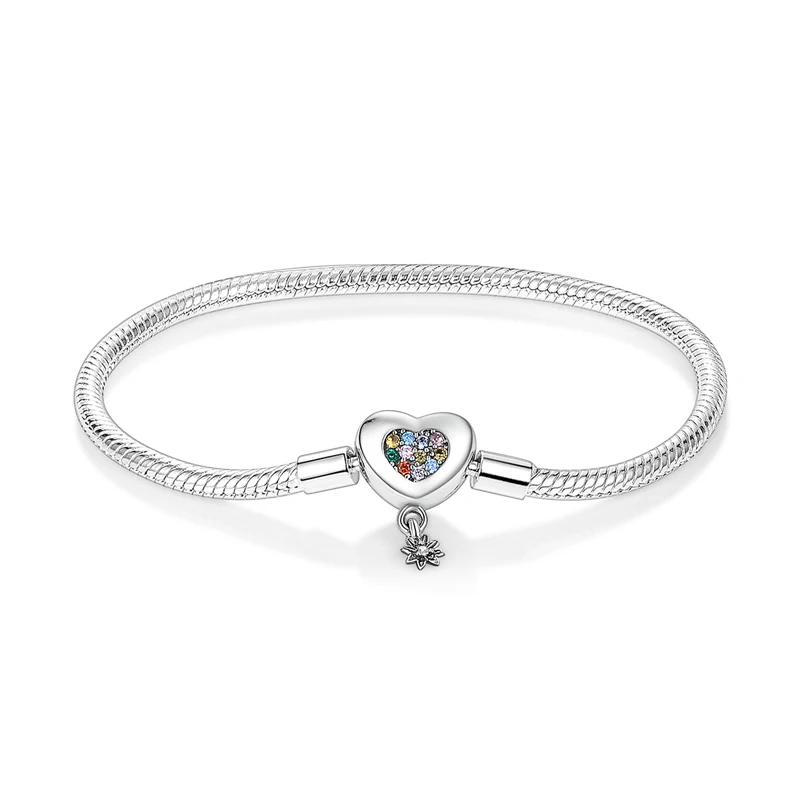 Gem Color: Pink, Length: 17cm - 925 Silver Heart Snake Chain Bracelet For Women Infinite Knot Butterfly Infinity Clasp Femme Bracelet Bangles Jewelry Gift