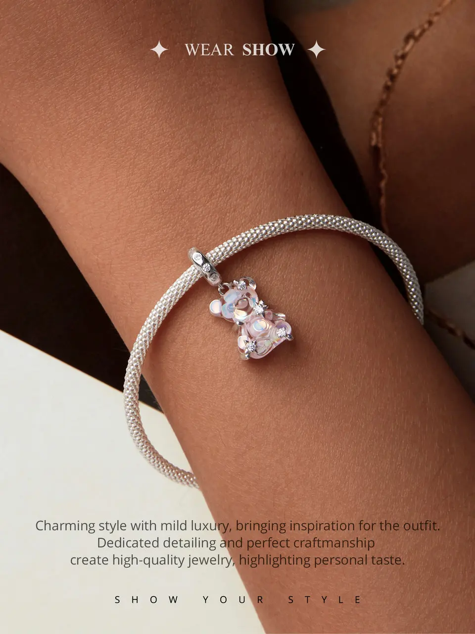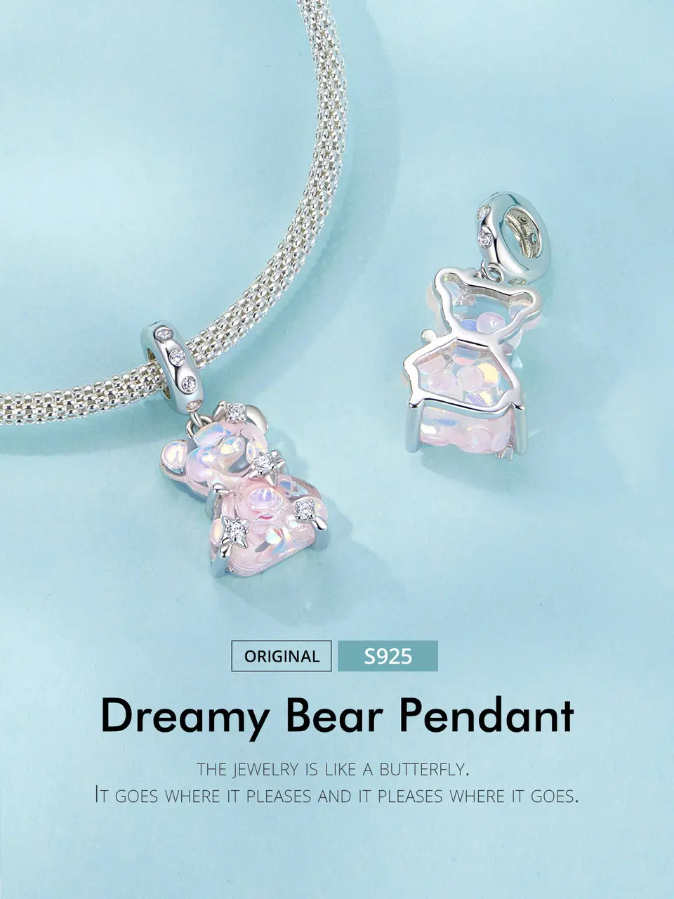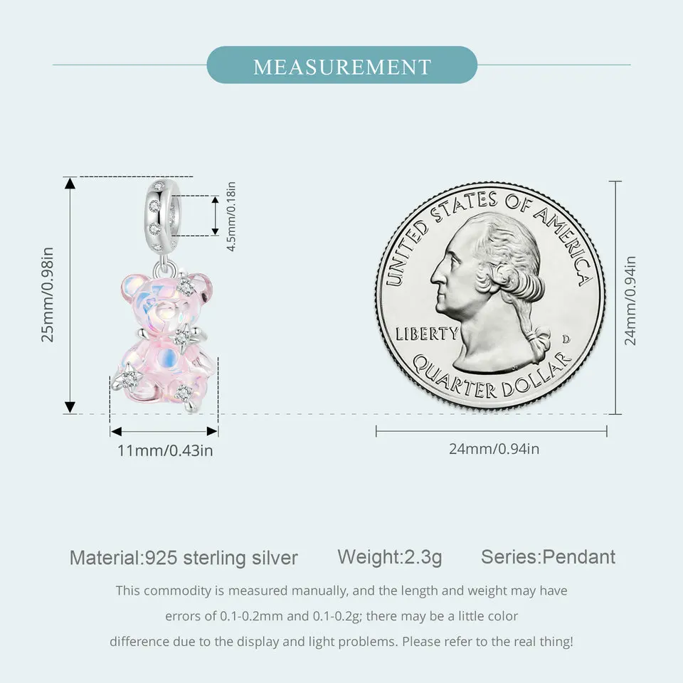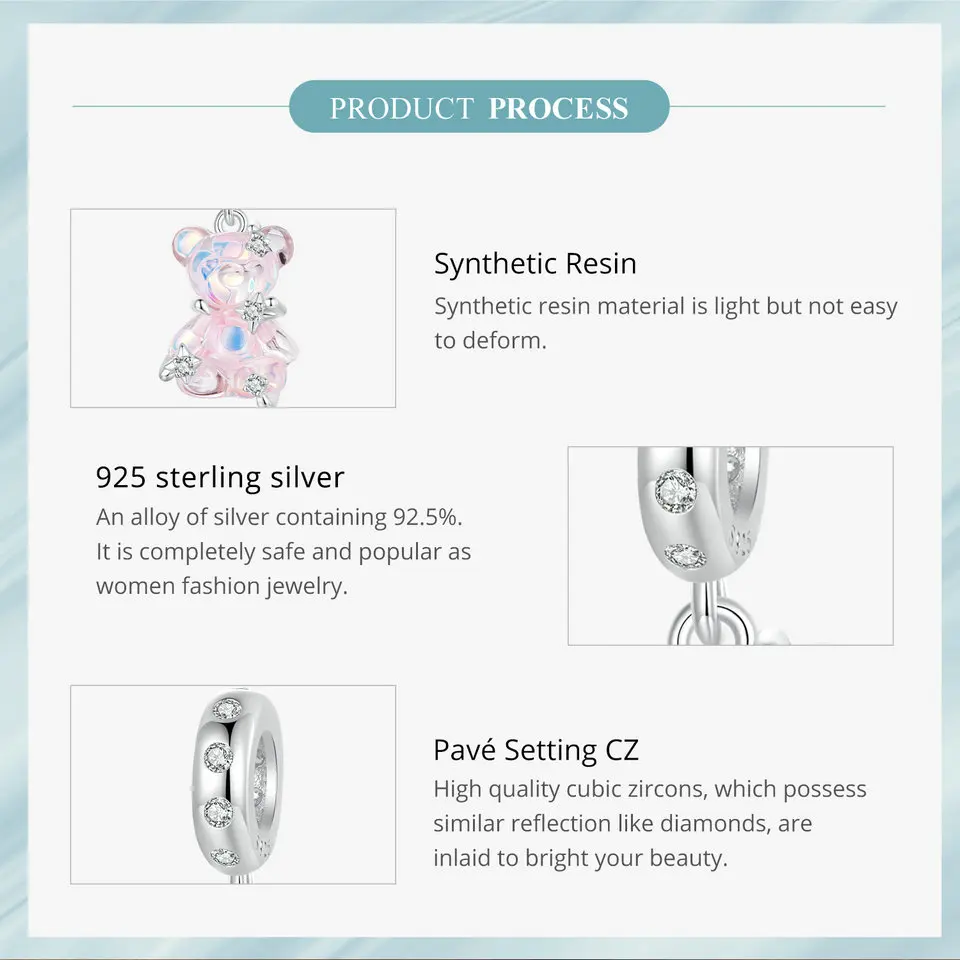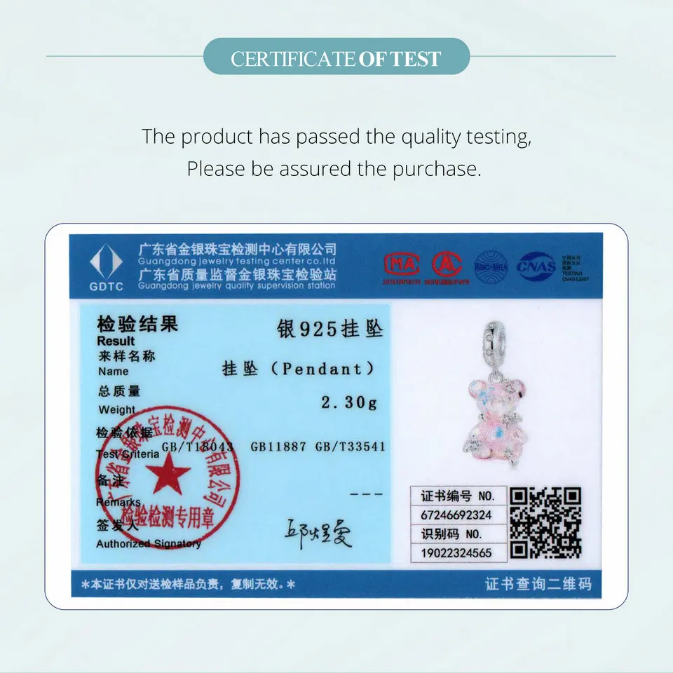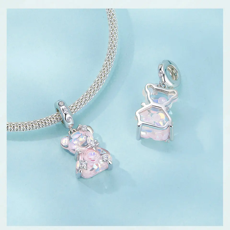 Certificate Number: WOSTU 925 Sterling Silver Princess Pink Bear Bead