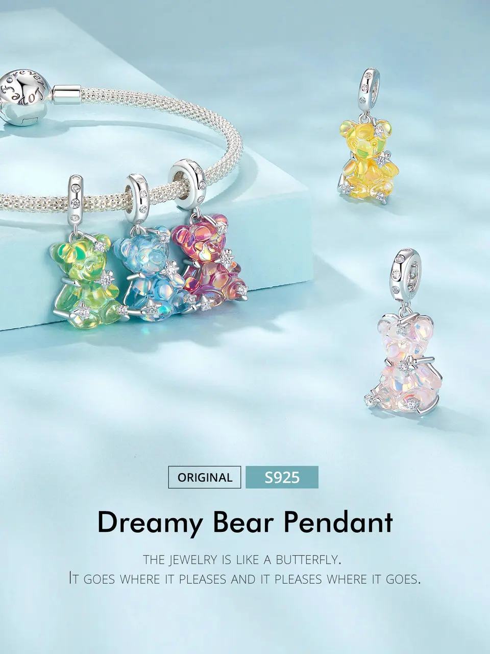 Metal: s925+CZ+Enamel process+plated White Gold