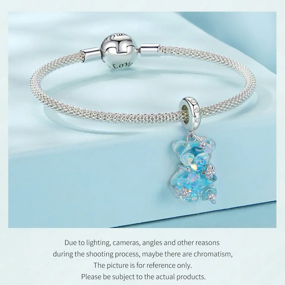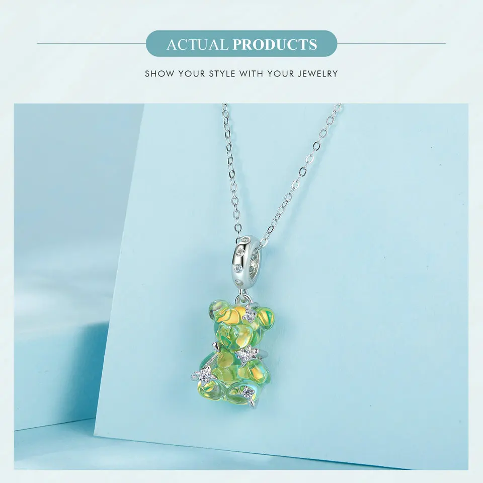 Gem Color: Red - WOSTU Real 925 Sterling Silver Princess Pink Bear Bead Blue Rose Red Bears Pendant Charms Fit Bracelet Neckalce DIY Bithday Gift