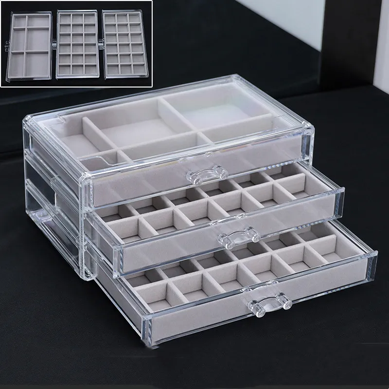 layers (each layer is different),grey three layers (two 18 compartments 1 five compartments necklace box)