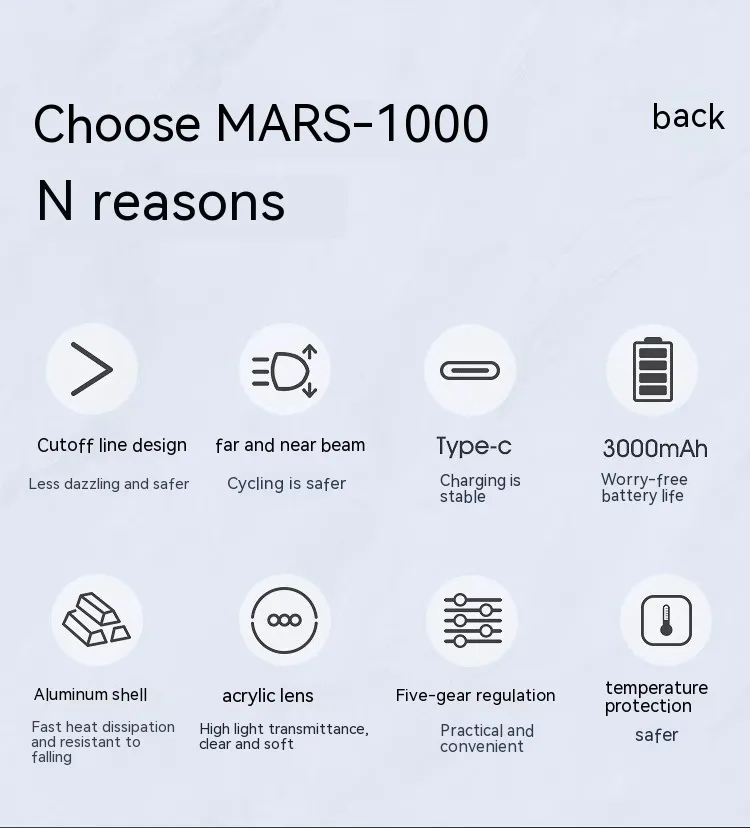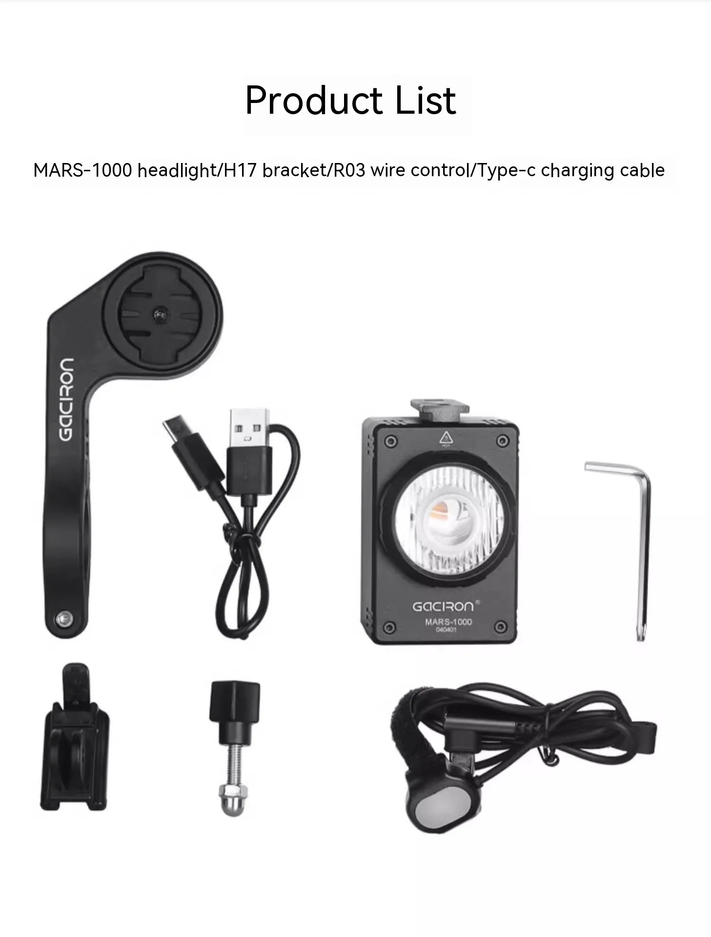 MARS-1000 front light+R03 wire control+H17 bracket+HO7L buckle+Type-c charging cable