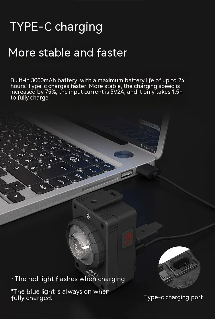 Powered by a high-capacity lithium battery, this bicycle headlight offers extended runtime on a single charge. The USB charging capability makes it easy to recharge from a laptop, power bank, or USB adapter, ensuring that you're always prepared for long-distance cycling trips.