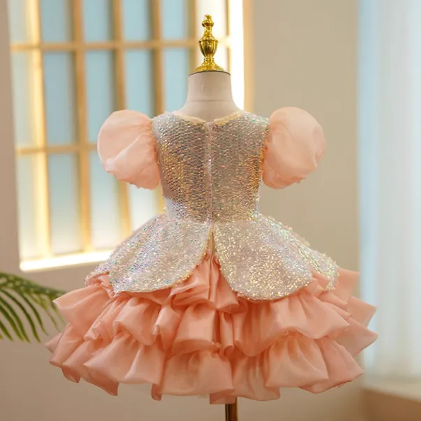 Order the Girls Pure Color Sequins Puff Sleeve Princess Dress today and let your little girl shine with confidence, comfort, and style!