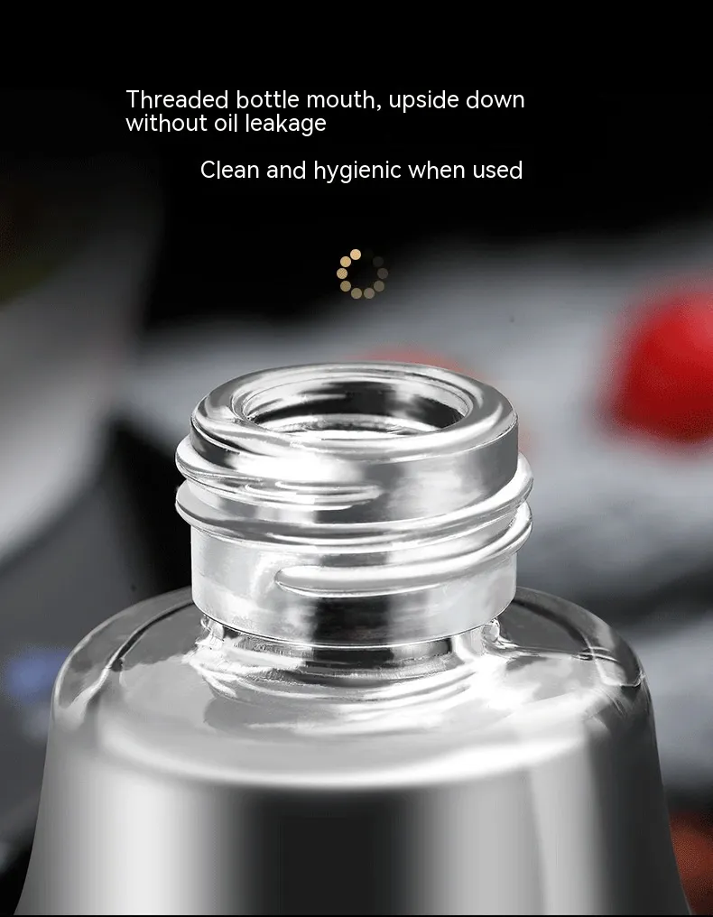 The bottle is equipped with a stopper that makes pouring oils, vinegar, or any liquid a breeze. The stopper ensures that you have complete control over the amount of liquid you pour, helping to prevent spills and waste. It is designed to give you a smooth, controlled pour every time. Whether you're drizzling oil on a salad or adding vinegar to a marinade, the stopper ensures precision, making it perfect for culinary tasks that require accuracy.