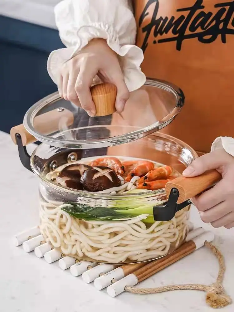 These pots come in various sizes and designs, from small saucepans to larger stew or soup pots, catering to different cooking needs. Many glass pots also feature a non-reactive surface, which ensures that the food's taste remains unaffected by the material. The clear glass design allows you to showcase the colors of your food, making it a great option for both practical cooking and stylish presentation.