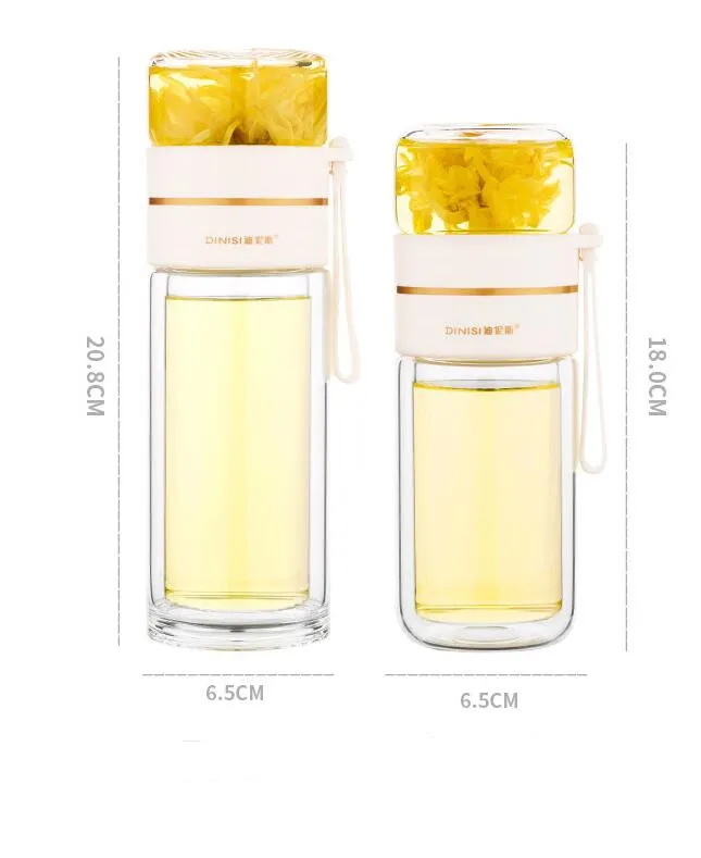 Discover the perfect blend of functionality and style with the Glass Water Bottle with Tea Infuser. This beautifully designed bottle is not only ideal for hydrating on the go, but it also allows you to enjoy your favorite teas, infused waters, and other beverages effortlessly. Crafted from high-quality materials, this water bottle is perfect for tea lovers and health enthusiasts alike, making it an essential addition to your daily routine.