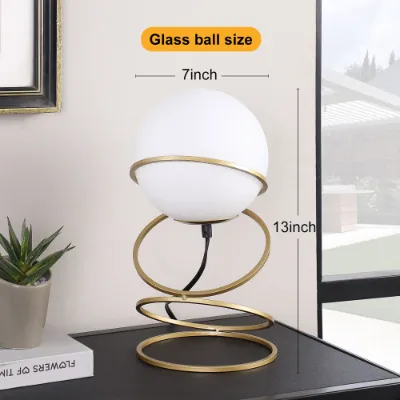 Product Name:13.5" H Glass Globe Matte Gold Spiral 4 Ring Metal Stand Table Lamp for Living Room, Nightstand Bedside Table Lamp for Bedroom, LED Lamp