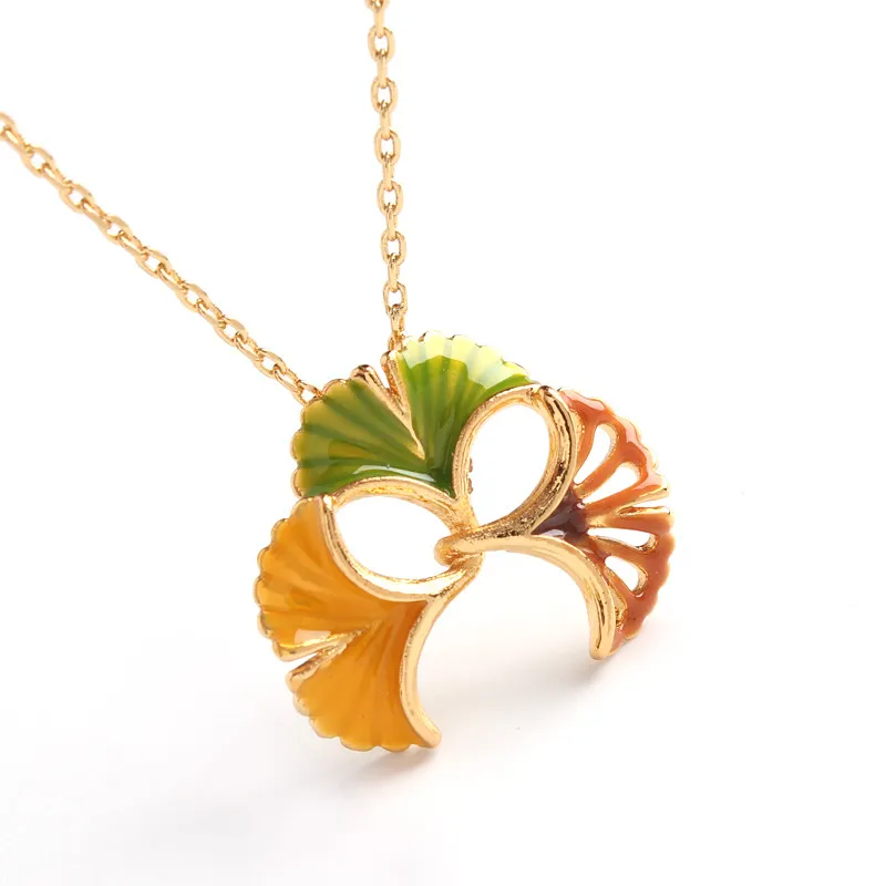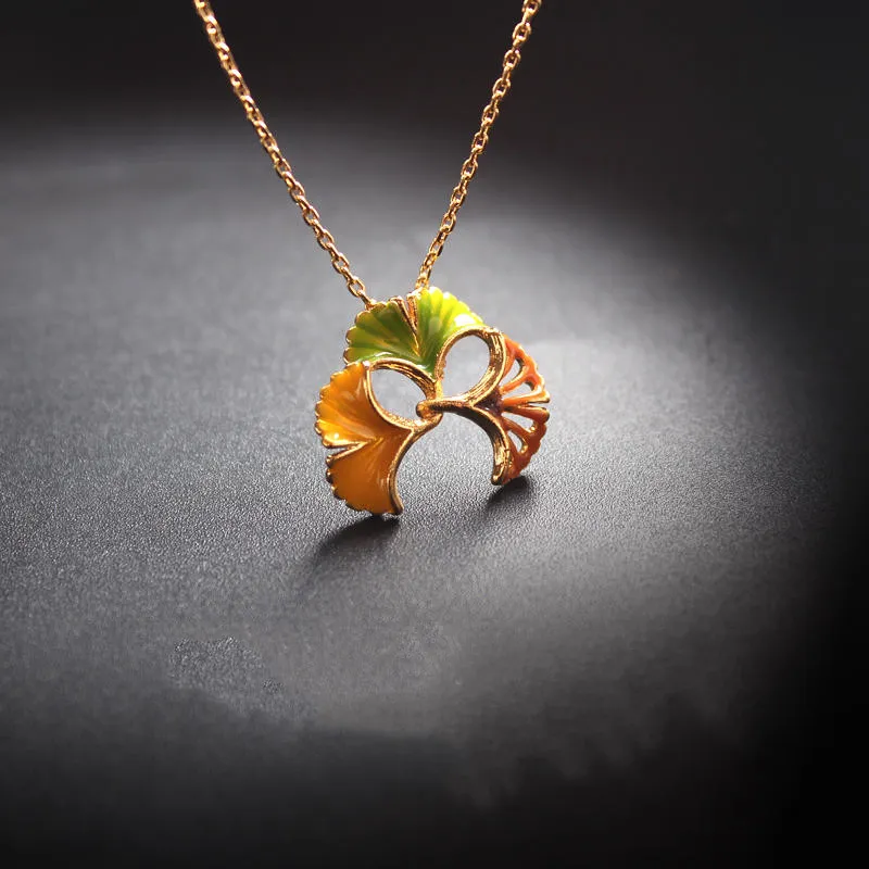 Gold Drop Glaze Ginkgo Leaf Elements Fresh Elegant Necklace