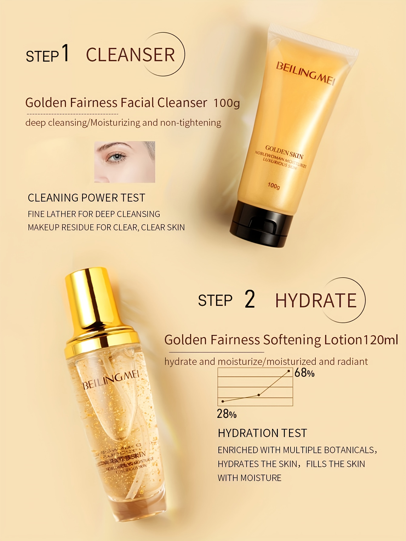 - Luxurious Ingredients: Infused with Golden, Collagen, Hyaluronic Acid, Niacinamide, and Plant Squalane for superior results.
