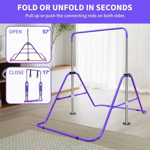 Introducing our Expandable Gymnastics Bar for Kids - Height Adjustable Junior Training Bar for Home, Folding Gymnastic Horizontal Bars Equipment in Pink! This versatile and sturdy gymnastics bar is perfect for young gymnasts to practice and improve their skills right in the comfort of their own home. With its adjustable height feature, this training bar can grow with your child as they progress in their gymnastics journey. Whether they are just starting out or are more advanced, this bar is suitable for all skill levels. The folding design makes it easy to set up and store away when not in use, saving space in your home. Made with durable materials, this gymnastics bar is built to last through countless practice sessions. The pink color adds a fun and vibrant touch that kids will love. It's not only a great tool for improving strength and flexibility, but also for building confidence and discipline. Give your child the gift of a safe and effective training experience with our Expandable Gymnastics Bar for Kids - Height Adjustable Junior Training Bar for Home, Folding Gymnastic Horizontal Bars Equipment in Pink. Watch them soar to new heights in their gymnastics journey!