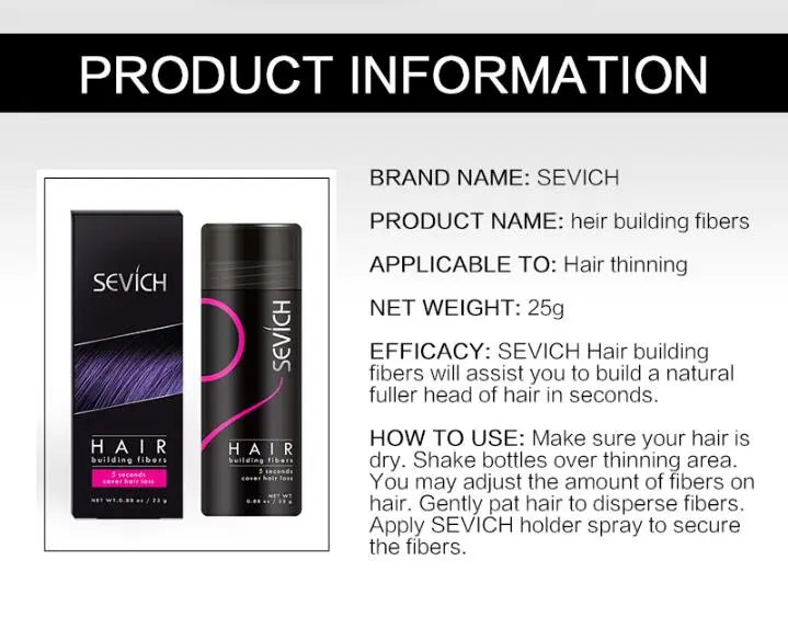 The Hair Building Fibers are easy to apply and work on all hair types and colors. Simply sprinkle the fibers onto the thinning areas and use a comb to distribute them evenly for a natural, fuller look. For best results, use the fibers in conjunction with your favorite hair styling products.