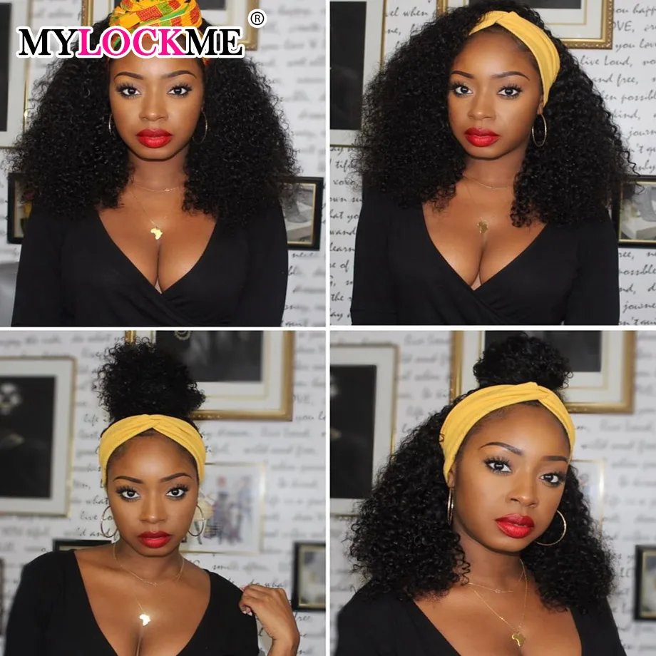 Hair Color: #130, Stretched Length: 14inches - Headband Wig Human Hair Kinky Curly MYLOCKME No Glue Full Machine Made Brazilian Remy Human Hair Wigs For Women 180% Density