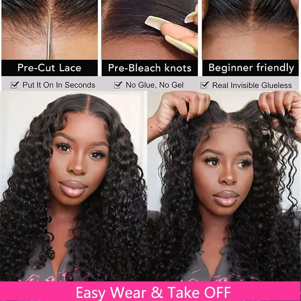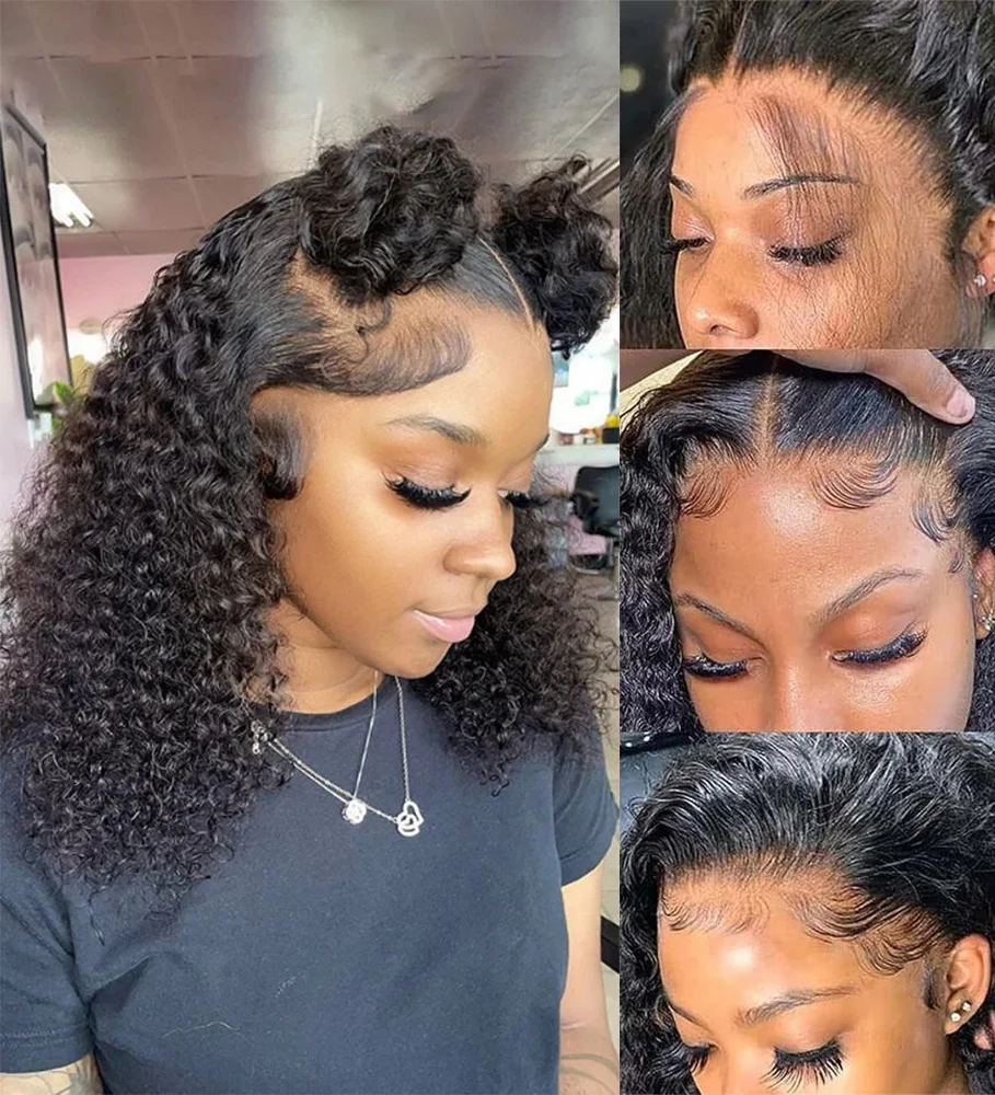 Hair Color: #1B, Ships From: United States, Stretched Length: 16inches, Density: 150% - Water Wave Bob Wig Glueless Preplucked Human Wigs Ready To Go 13x4 Frontal Brazilian Wigs HD Transparent Lace Wig Deep Curls