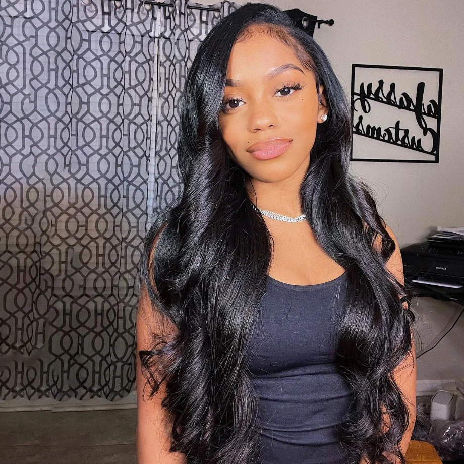 Hair Color: #2, Stretched Length: 36inches, Density: 180%, Ships From: CHINA - 30 38 Inch 13x6 HD Body Wave Lace Front Wig Pre Plucked Black Loose Wave 13x4 Lace Frontal Wig 100% Human Hair Wigs For Women