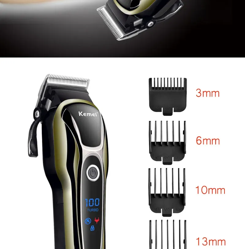 Equipped with 4 different length limit combs (3 mm, 6 mm, 10 mm, 13 mm),