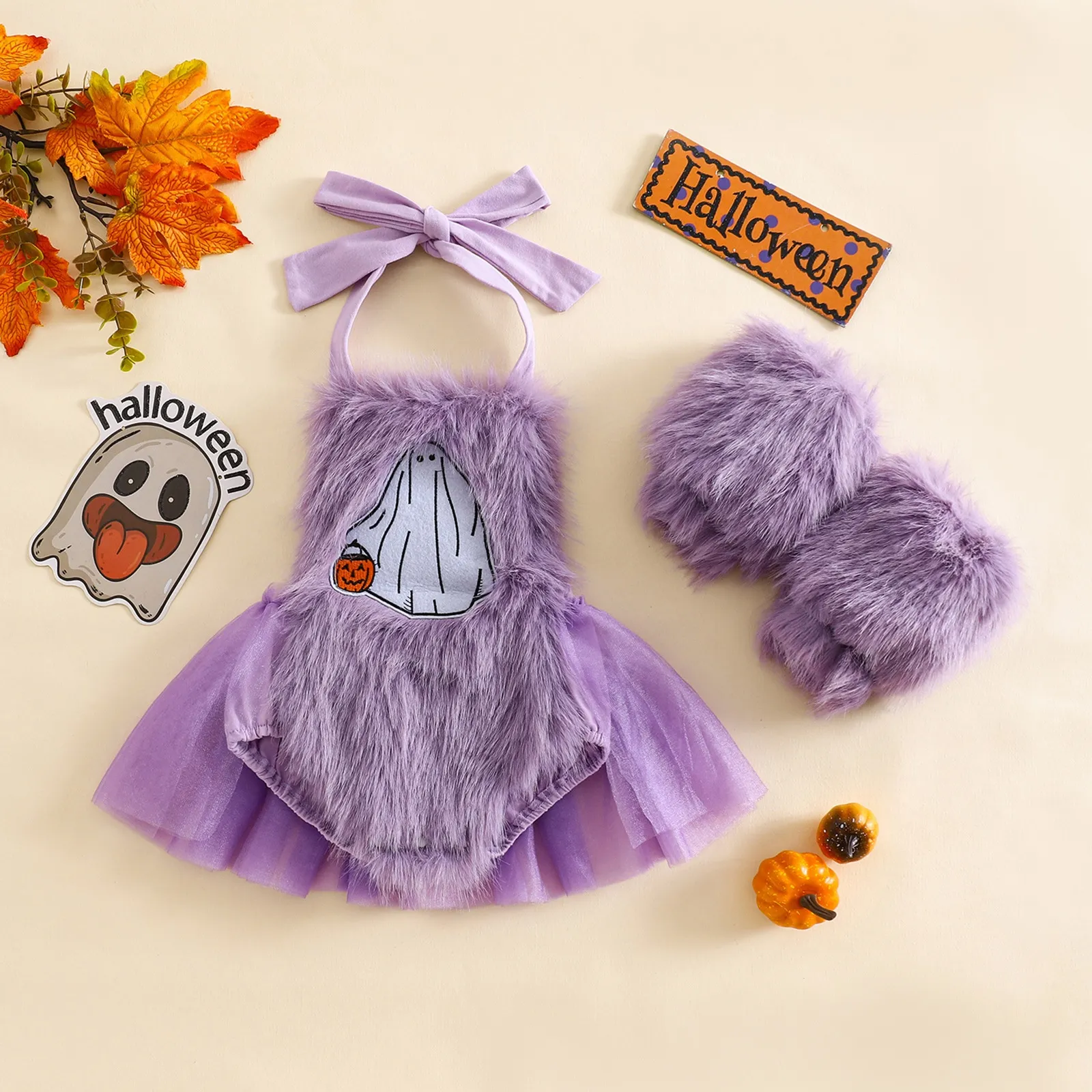 Halloween Children's Clothing Plush Girls' Cute Crawling Suit Two-piece Set