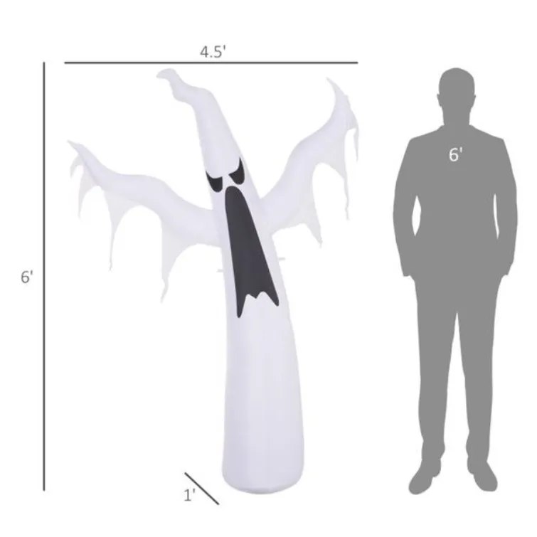 - - Six-foot-tall yard inflatable white ghost appears to be dancing or floating through the night