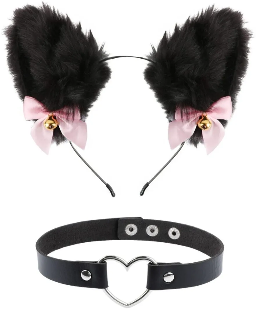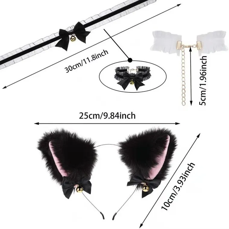 F black hair black + cat collar,