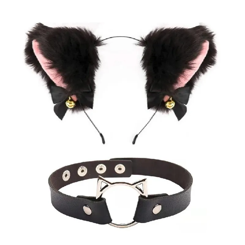 F black hair black + cat collar,