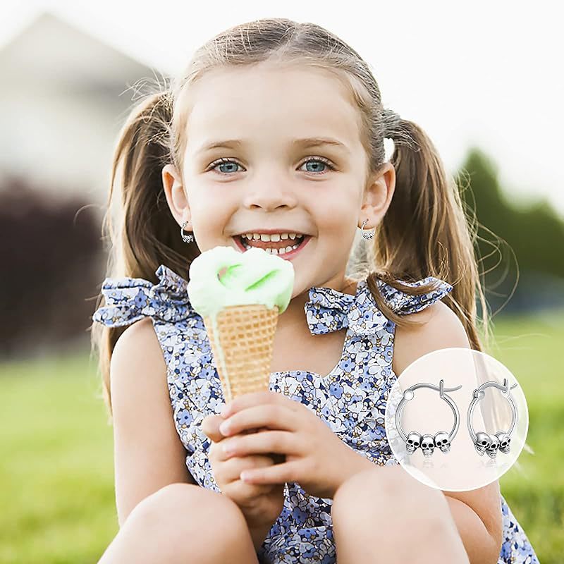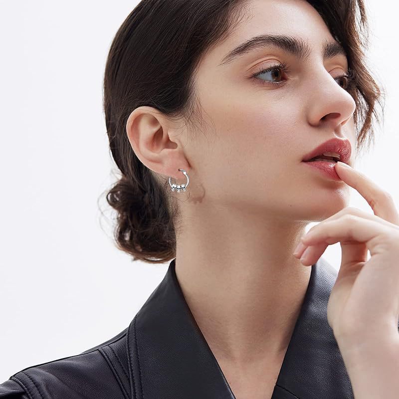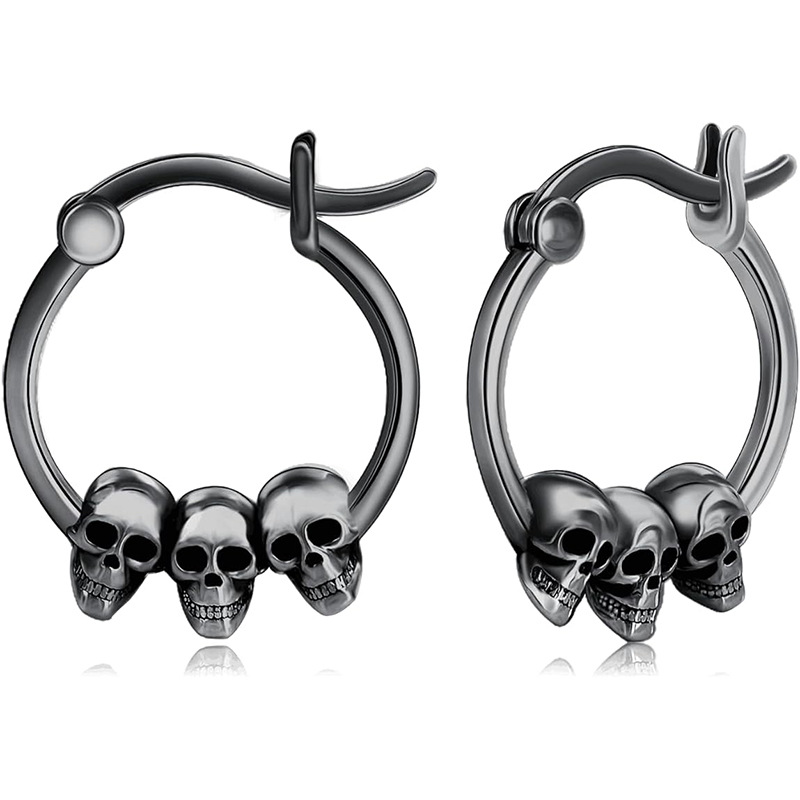 - ♥Skull Earrings Size♥ 17mm/0.67in, safely secured by click-top closures. Skull hoop earrings, Lightweight and Comfortable for daily wearing.