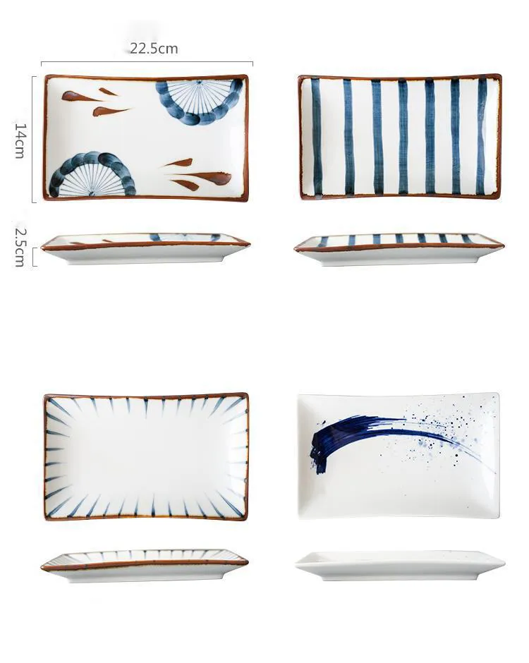 Color: 9-inch rectangular plate—blue ink dots, 9-inch rectangular plate—thousand silk, 9-inch rectangular plate—three leaves, 9-inch