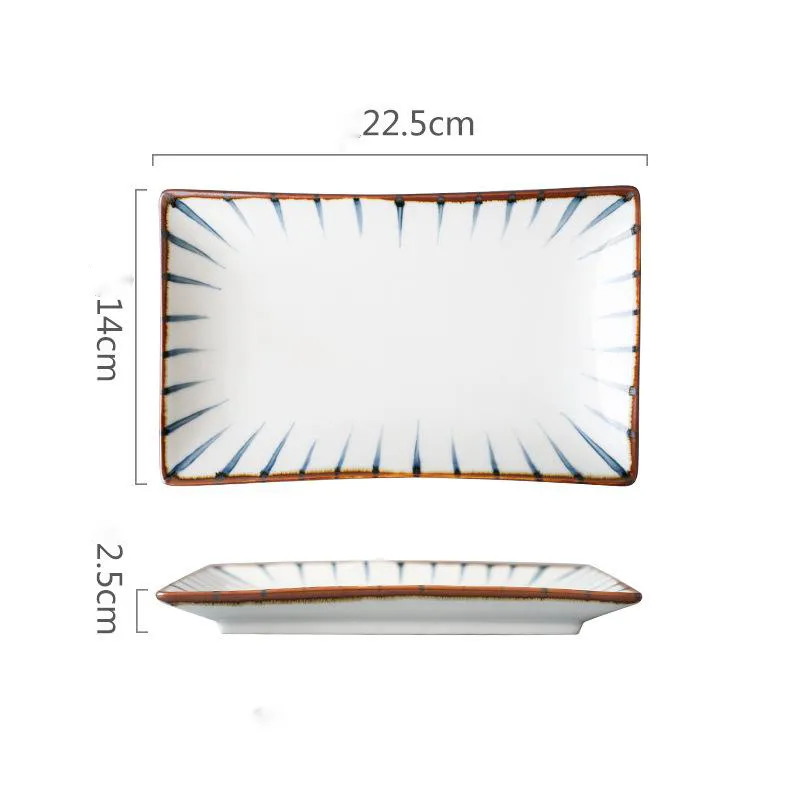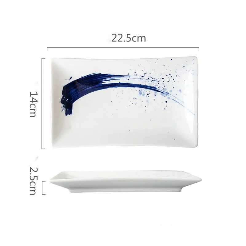 The Hand-Painted Japanese Style Retro Hand-Painted Ceramic Sushi Plate Rectangular Plate is a beautifully crafted piece that brings both artistry and practicality to your dining table. Designed to showcase the elegance of Japanese artistry, this ceramic sushi plate offers a timeless, traditional aesthetic while providing a functional and spacious surface for serving sushi, appetizers, or other delicacies. Whether you're hosting a sushi night or simply want to elevate your everyday meals, this hand-painted plate is an excellent choice that combines functionality with cultural charm.