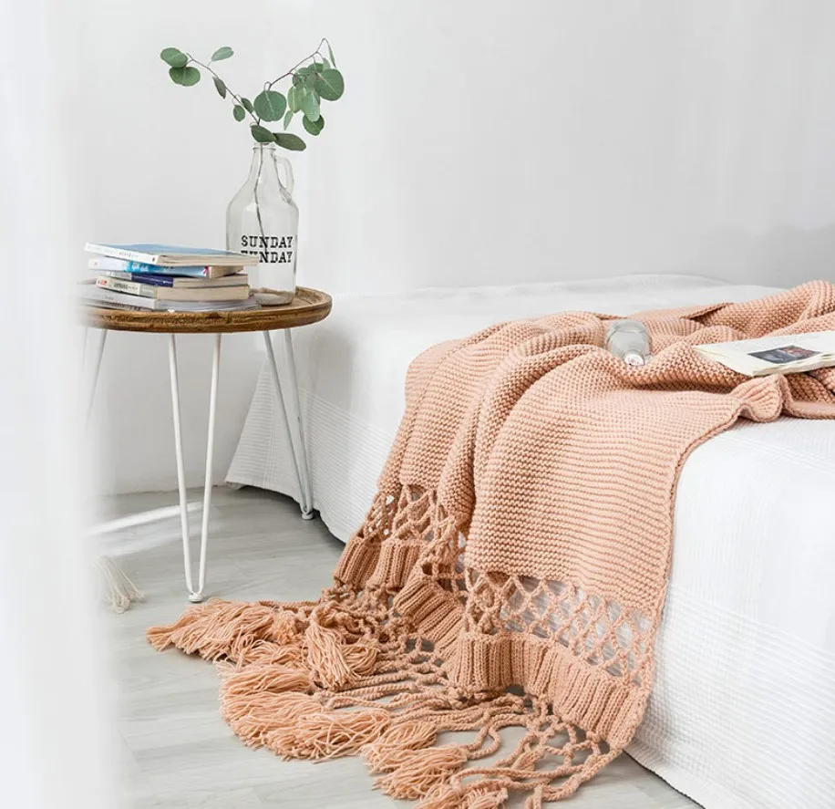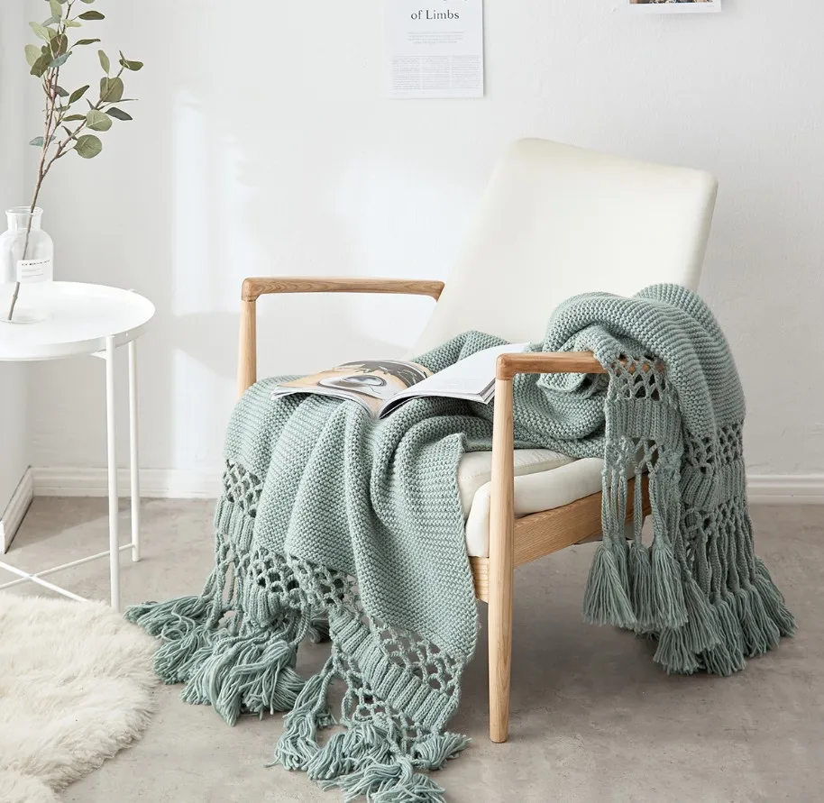 For those who appreciate warmth, craftsmanship, and timeless design, the Hand-Woven Tassel Knitted Blanket is the perfect addition to your home. Expertly crafted with intricate knitting techniques and finished with beautiful tassel accents, this blanket provides superior comfort and adds a touch of bohemian charm to any living space. Whether you’re looking for a cozy throw for your sofa, a stylish accent piece for your bedroom, or a lightweight cover for your leisure time, this blanket is an excellent choice.