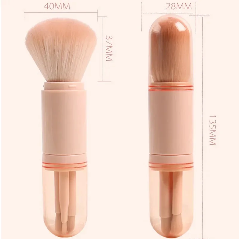 Handle Color: Pink - 4pcs/set 4 In 1 Telescopic Makeup Brush Portable Travel Makeup Brushes Set Eyeshadow Loose Powder Mini Makeup Brush Beauty Tools