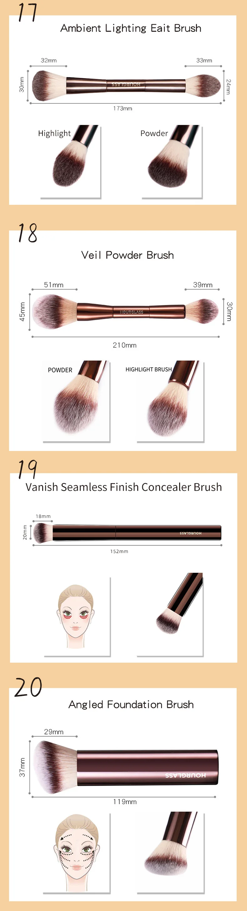 Handle Color: PURPLE - Hourglass Makeup Brushes Powder Foundation Concealer Blusher Bronzer Eye Shadow Eyebrow Eyeliner Sculpting Brush
