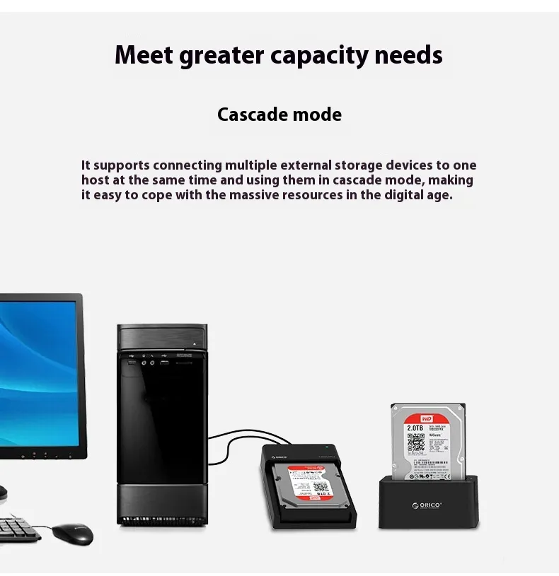 With plug-and-play compatibility, it supports 2.5-inch and 3.5-inch SATA hard disks and SSDs, turning them into a portable external drive instantly. The USB high-speed interface ensures fast data transmission, making it ideal for large file transfers, movies, photos, and work documents.