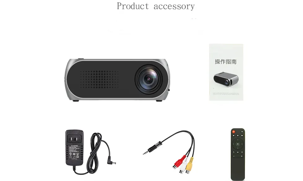 Standard: YG320 battery version host + remote control + power adapter + three in one AV line + manual + box