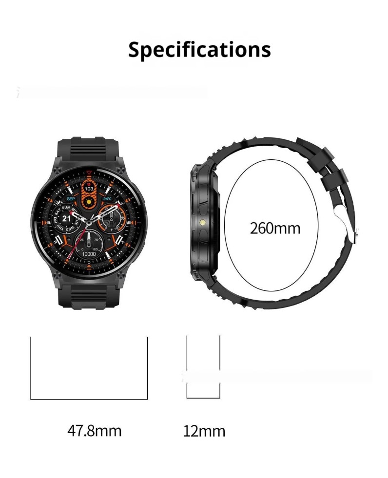 Built to withstand the rigors of outdoor activities, this smart watch offers precise monitoring of your health, fitness, and environmental conditions. It comes equipped with an array of sensors that track heart rate, blood oxygen levels, sleep patterns, calories burned, and even your stress levels. Its rugged design ensures durability, while its lightweight construction offers a comfortable wearing experience, perfect for both everyday use and extreme sports.