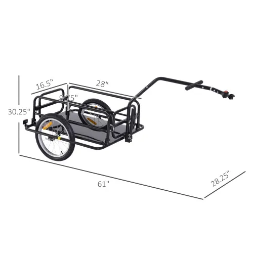 Product Name:Aosom Bike Cargo Trailer, Bicycle Trailer, Heavy-Duty Bike Wagon Cart, Foldable Compact Storage, with Universal Hitch, 16" Wheels, 88 lbs. Capacity, Black