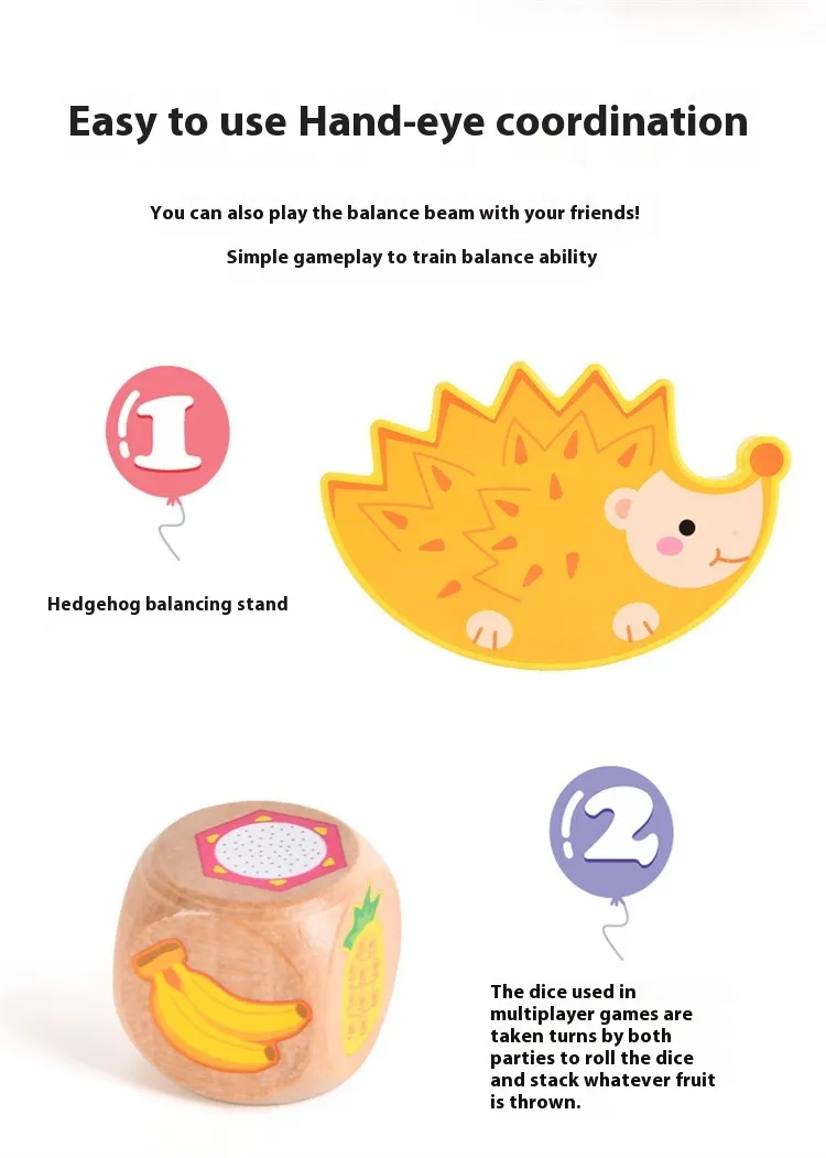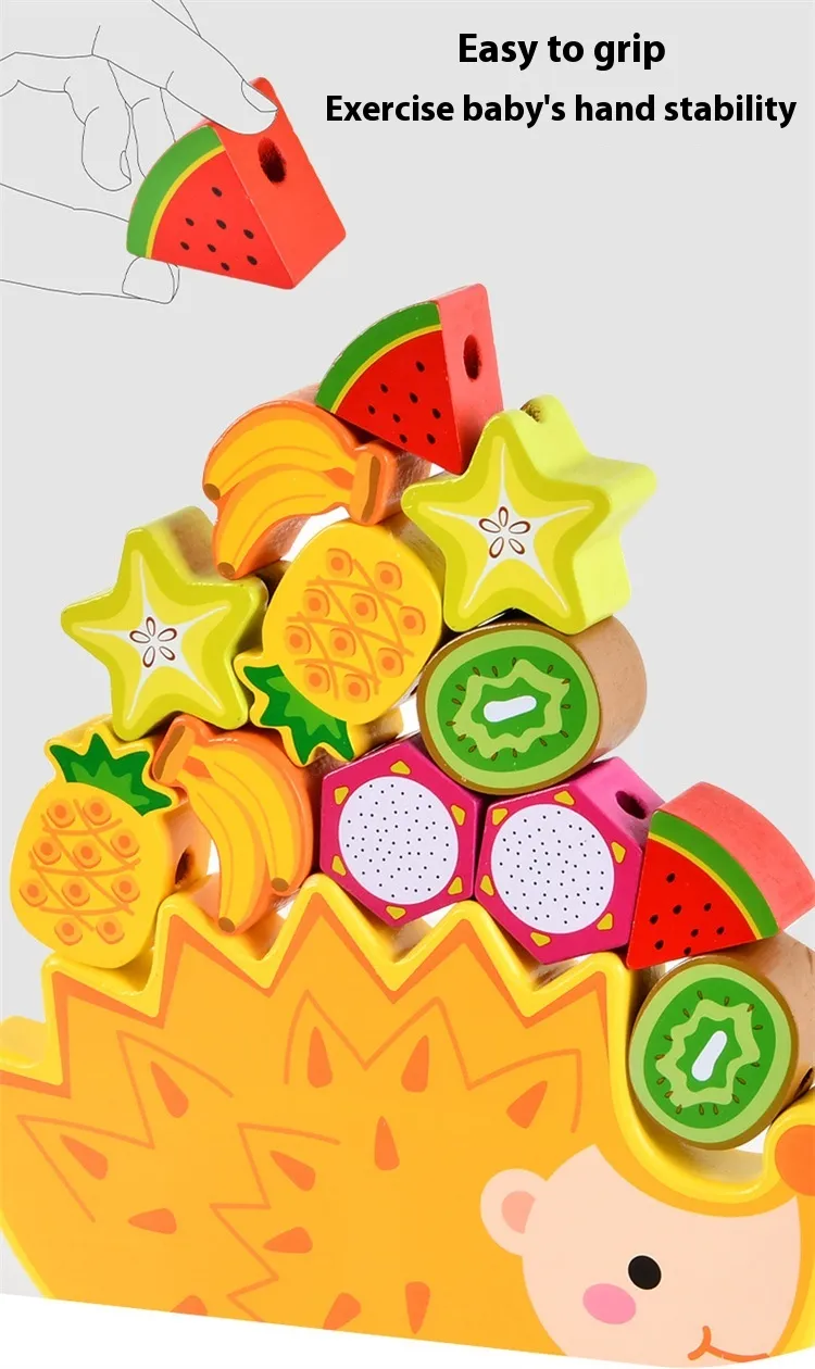 Key Features of the Hedgehog Fruit Balance Building Blocks Cartoon Heap Tower Jenga