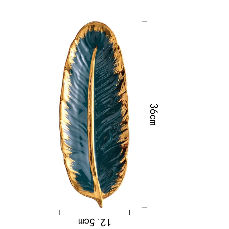 Specifications: gold-painted matte white feather small, gold-painted matte white feather large, green small feather tray, green large