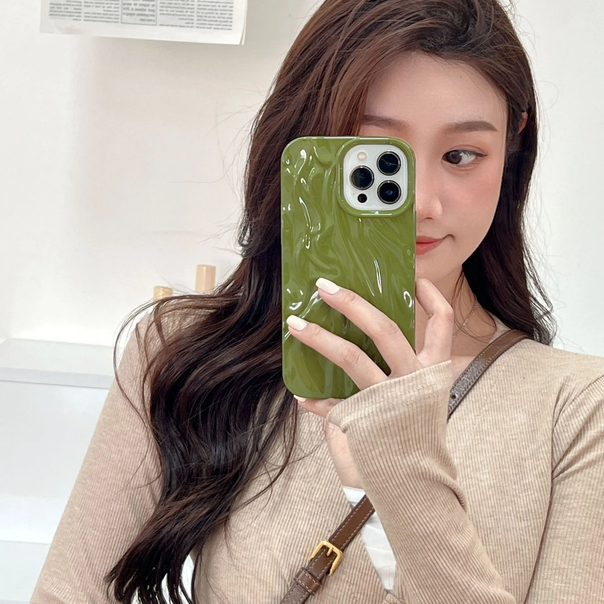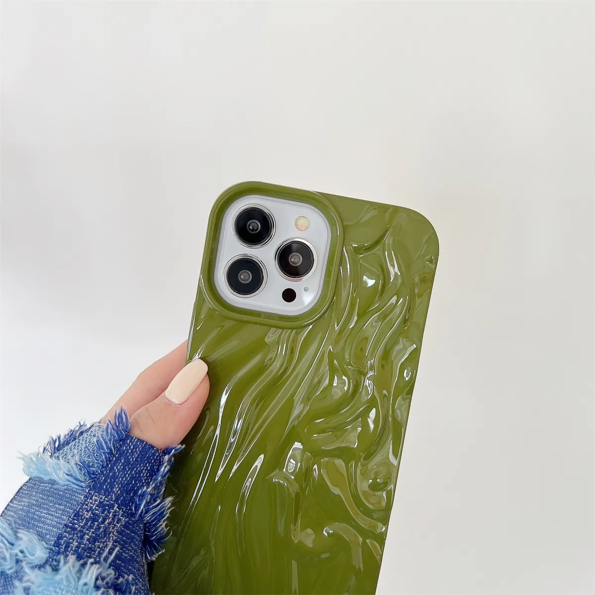 High-grade Ins Solid Color Water Ripple Silicone Phone Case