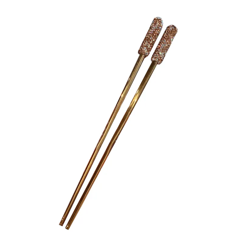 Color Classification: A pair of diamond-studded golden chopsticks, a pair of diamond-studded white chopsticks, a pair of diamond-studded red
