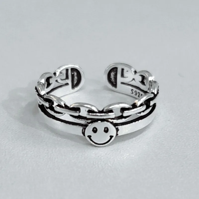 Whether you wear it alone or stack it with other rings, the double chain effect makes this ring an instant statement accessory. The design is perfect for those who love to incorporate bold pieces into their daily wear, creating a unique twist on conventional jewelry styles.