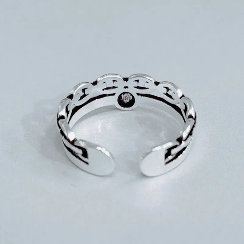 Whether you wear it alone or stack it with other rings, the double chain effect makes this ring an instant statement accessory. The design is perfect for those who love to incorporate bold pieces into their daily wear, creating a unique twist on conventional jewelry styles.
