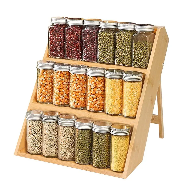 Home Bamboo And Wood Spice Countertop Storage Rack