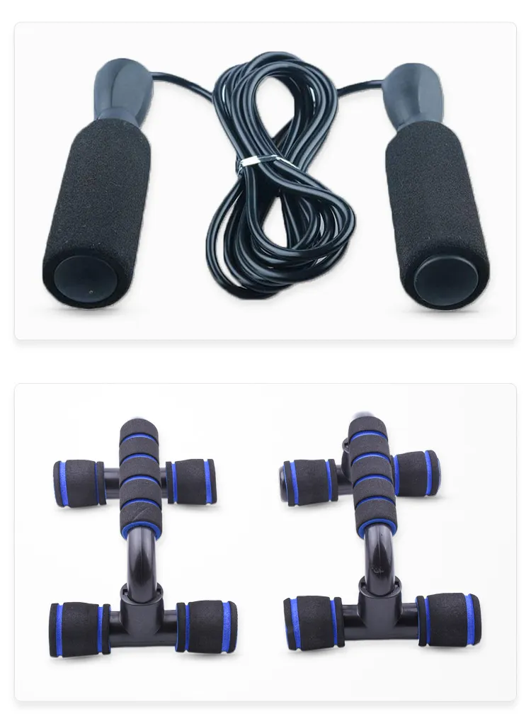 Sports suit: abdominal wheel, push-up support, grip, jump rope