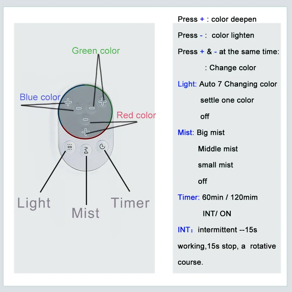 1. IR Remote Control(mist/timer/light control)