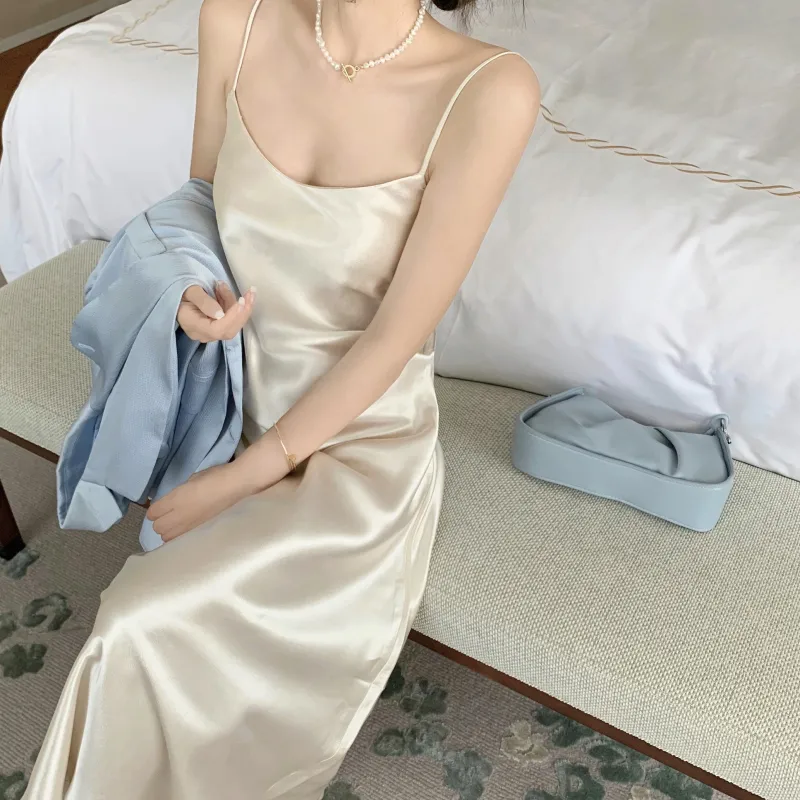 For a trendy, comfortable, and effortlessly chic look, the Hong Kong Flavor Satin Suspender Skirt Casual Gloss Suit is an ideal choice. With its glossy satin fabric, adjustable suspender straps, and versatile styling options, this skirt is perfect for those who love to combine fashion and comfort in one piece.