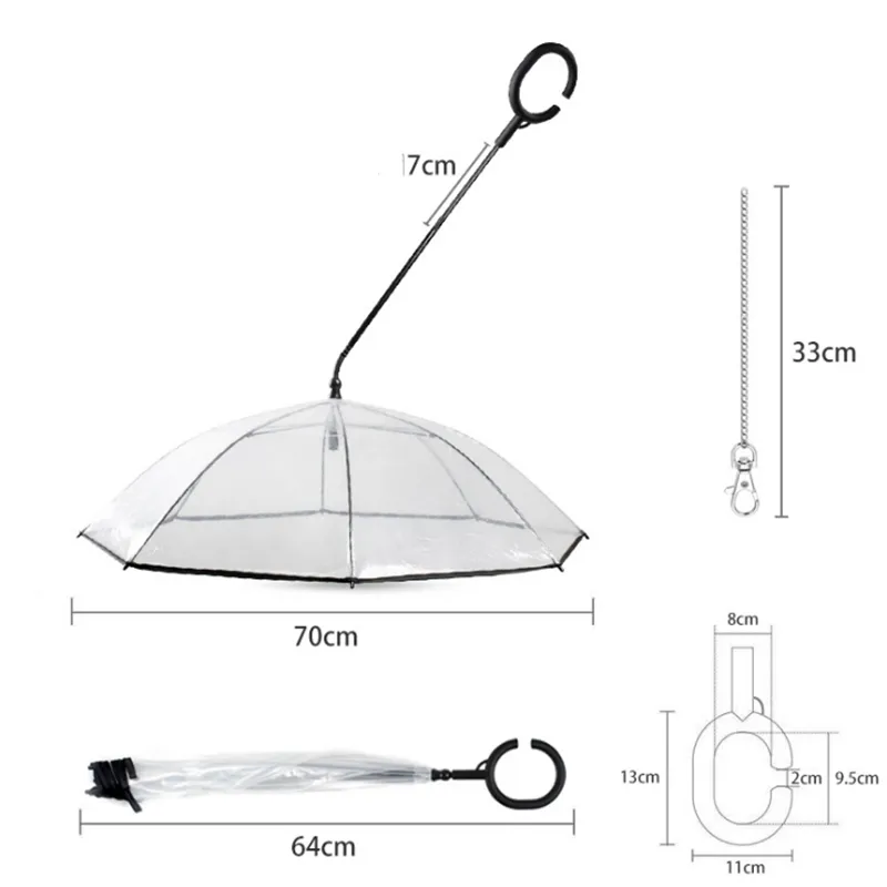 This umbrella is suitable for small to medium-sized dogs and cats, providing them with a comfortable and dry environment during walks. Its transparent design ensures that your pet remains visible, promoting safety and interaction.