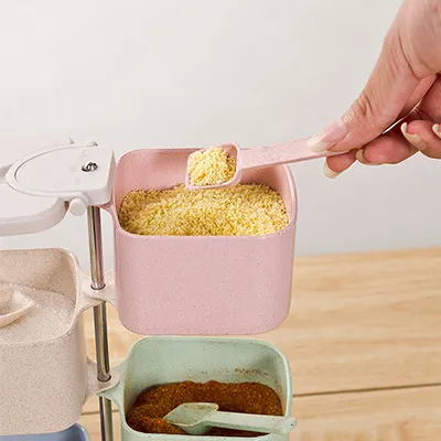 Specification: A: waterproof and moisture-proof seasoning box with spoon, B: wheat straw with spoon, C: wheat straw can rotate four grids