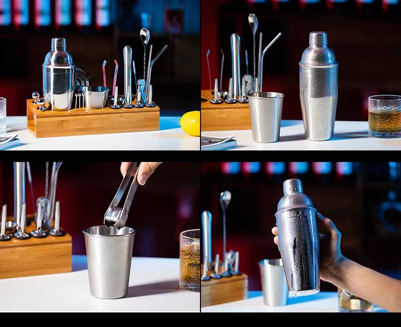 1. Material: Make of thickening, this cocktail Bartending Kit is very strong, anti-rust, corrosion-resistant, and easy to clean.