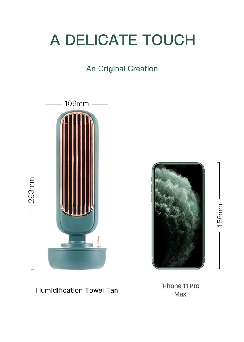 1.This portable bladeless tower fan with spray humidification is not only a desktop spray mist fan but also a home decoration. It features a