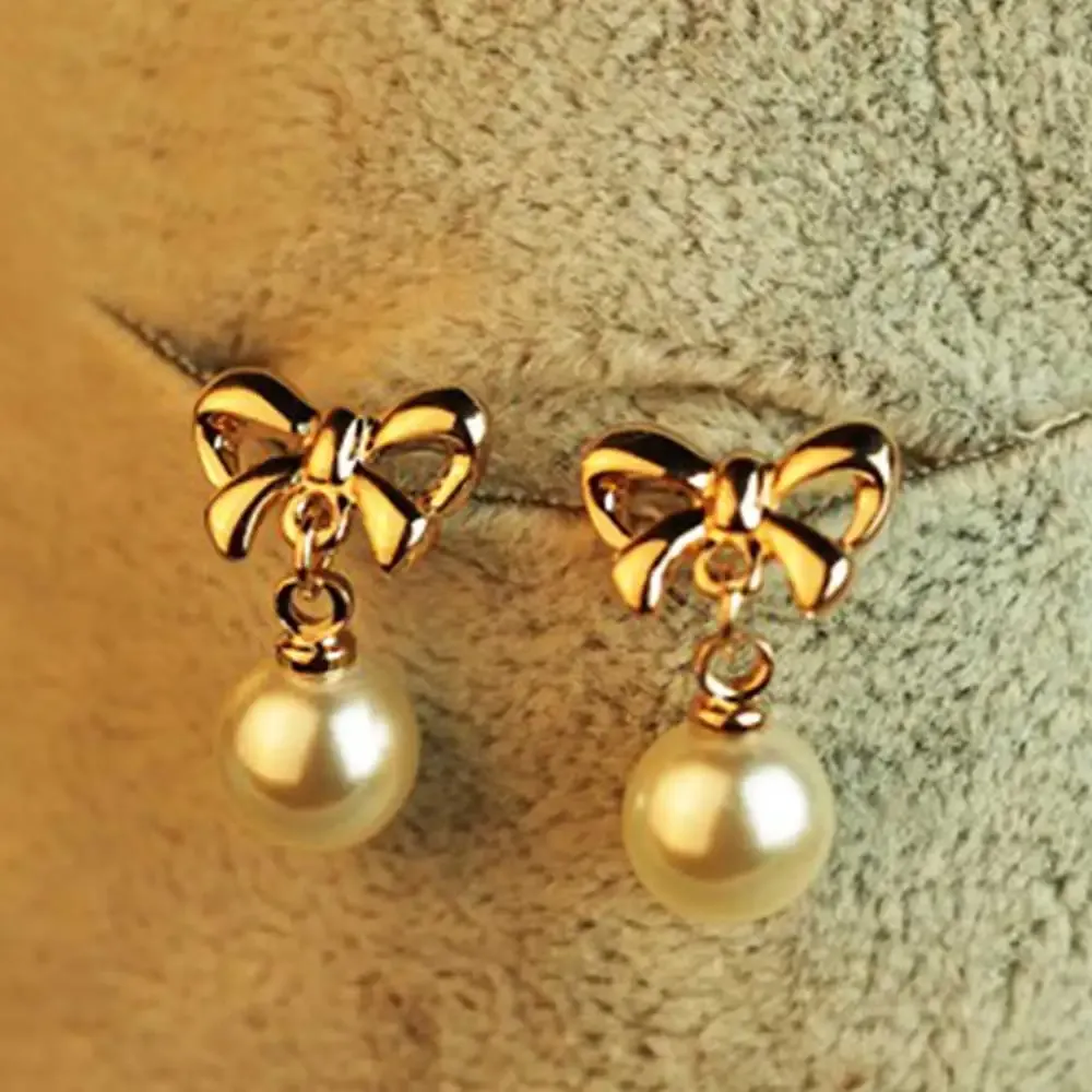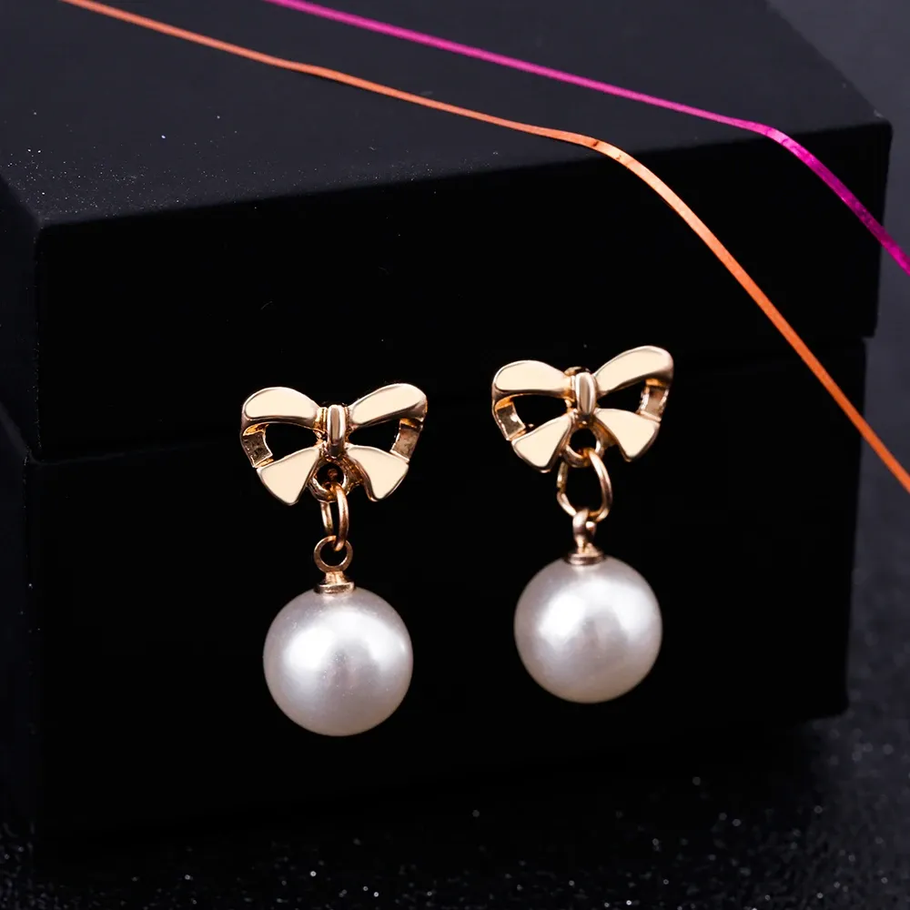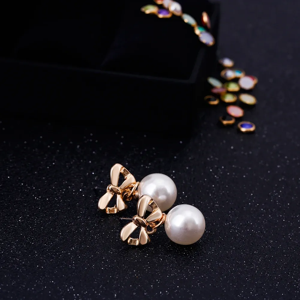 Hypoallergenic Heart-shaped Zircon Earrings Women's Bow Pearl Earrings